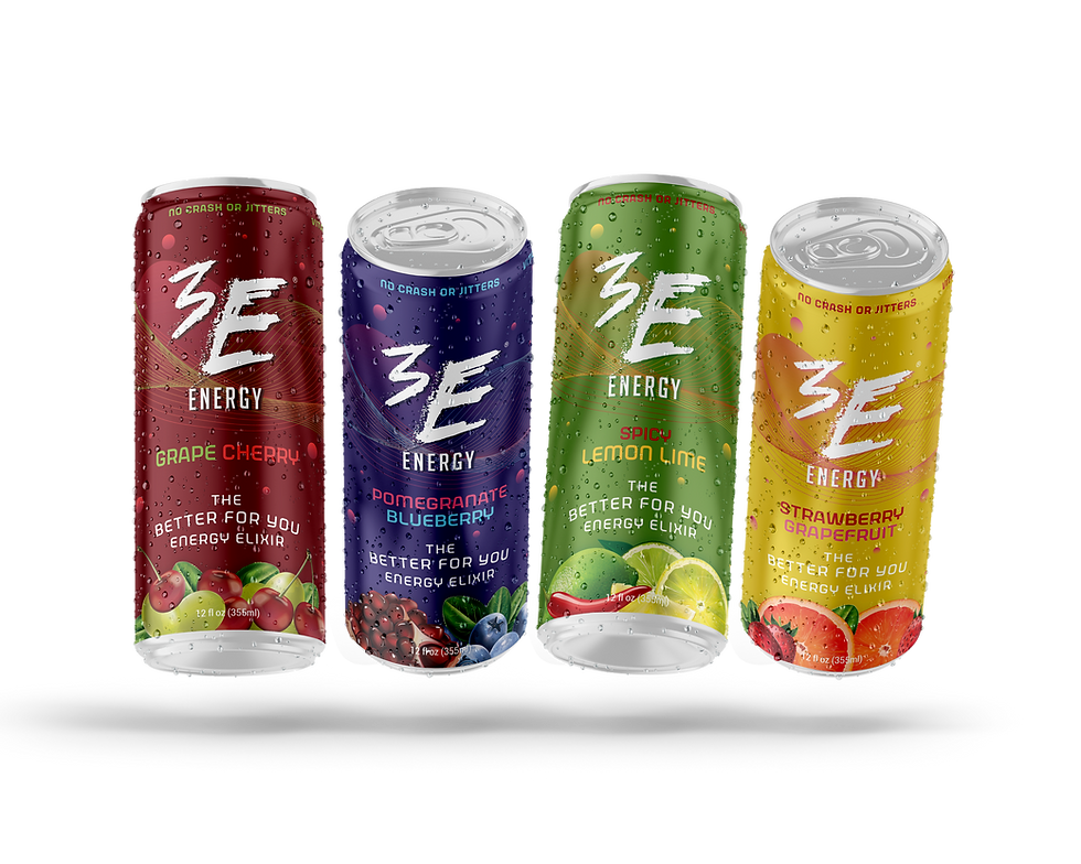 3E Energy Elixir is a unique energy drink that delivers lasting energy with no crash or jitters, all thanks to its unique formula. I was lucky enough to have the company reach out to me for the rebrand, and after a deep dive into their back story and a look into their current market, we landed on the bright, energetic design you see below.